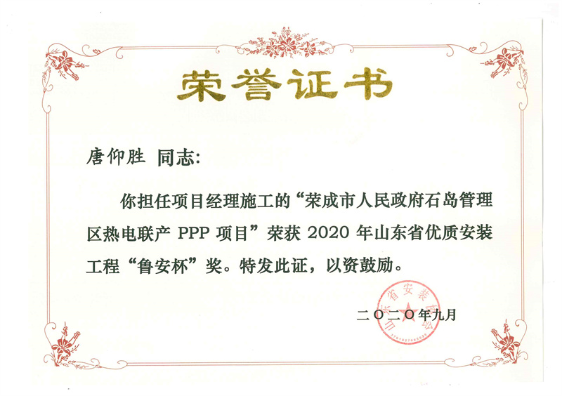 Certificate of honor
