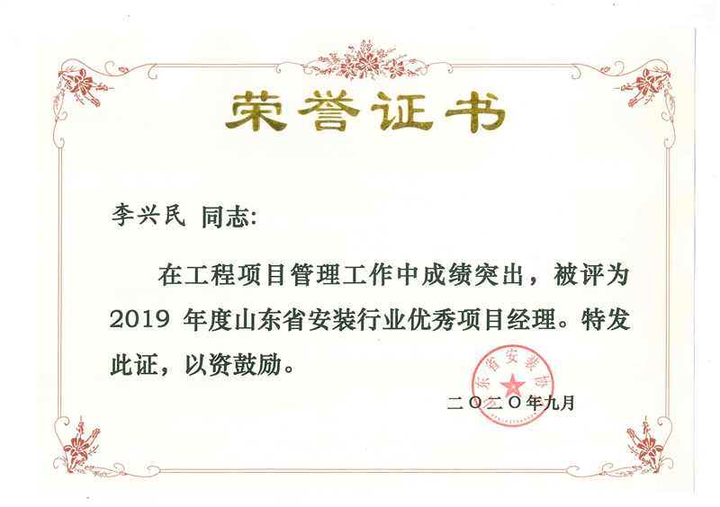 Certificate of honor